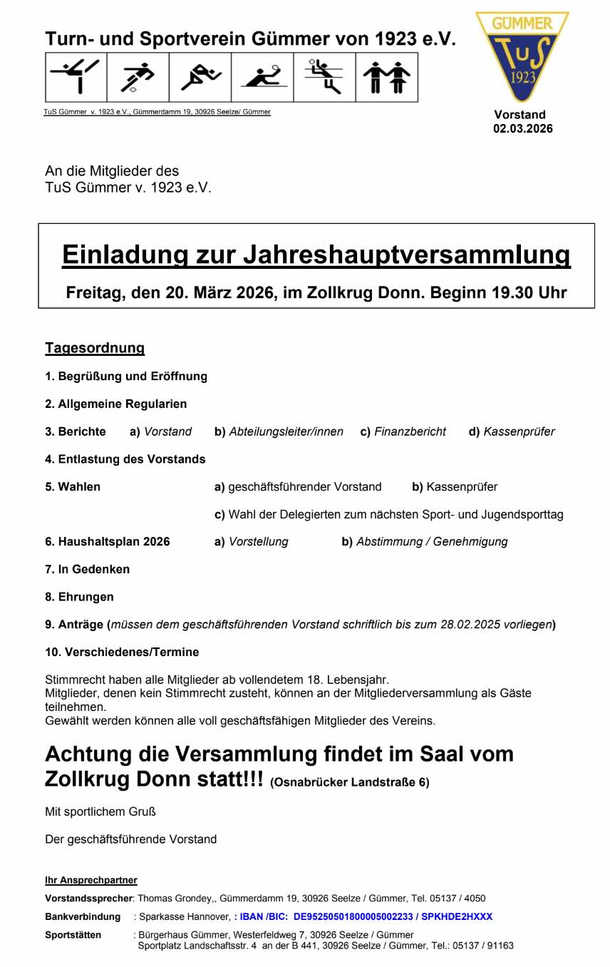 Einladung zur Jahreshauptversammlung